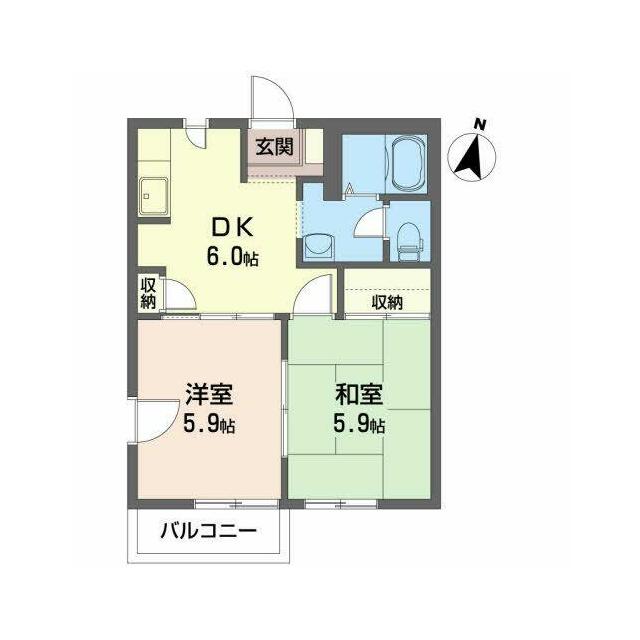 2DK(DK6.0帖 和室5.9帖 洋室5.9帖) |